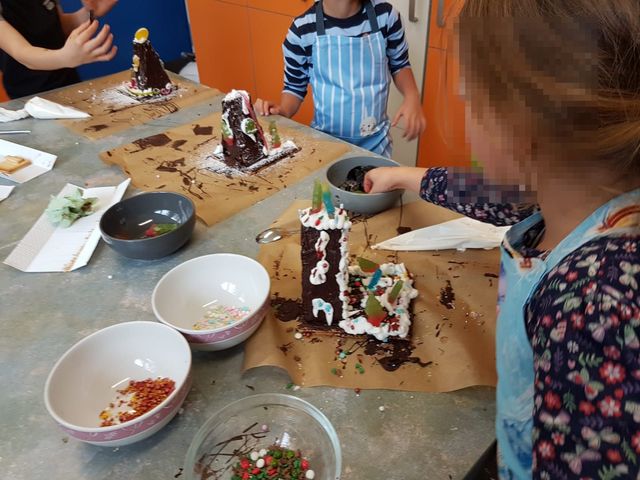 Dabei konnte jedes Kind sein ganz eigenes Haus bauen und gestalten. Wir haben gebaut, genascht, gesungen, gestaunt, dekoriert und noch sehr viel mehr genascht. Selten haben Bauarbeiten so viel Spaß gemacht und gleichzeitig so gut geschmeckt! Es sind zahlreiche tolle Häuschen entstanden, die von den Kindern stolz mit nach Hause genommen und mit leuchtenden Augen präsentiert wurden.