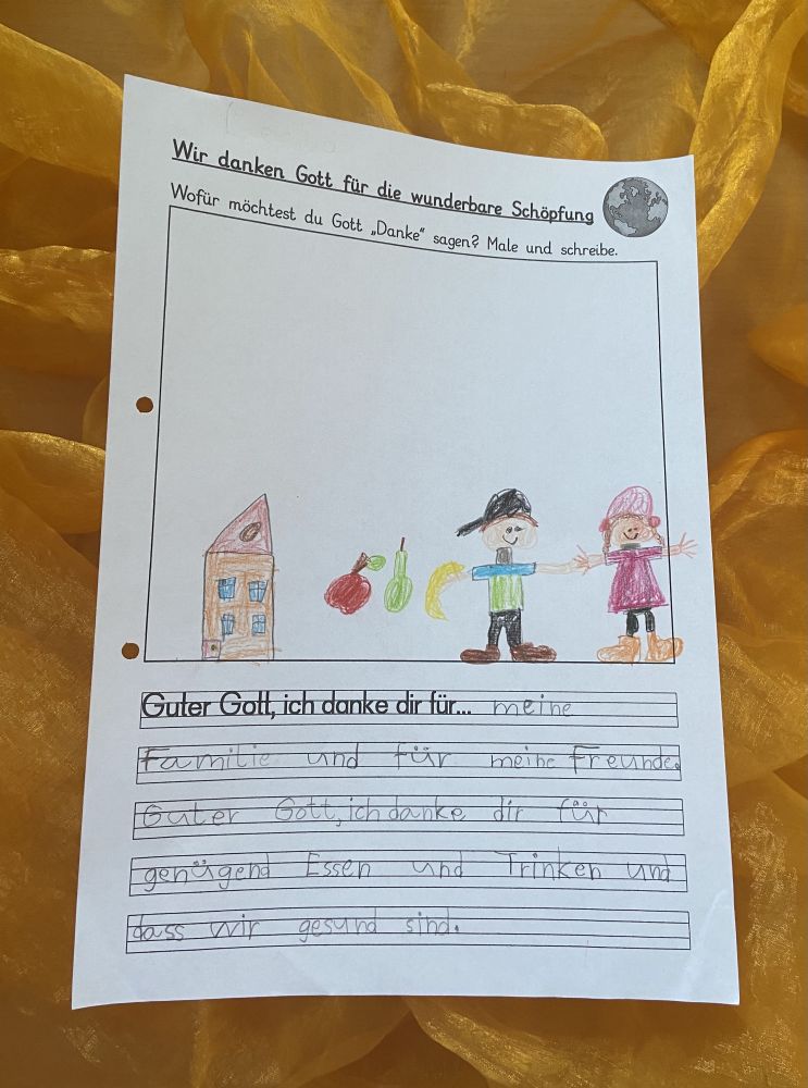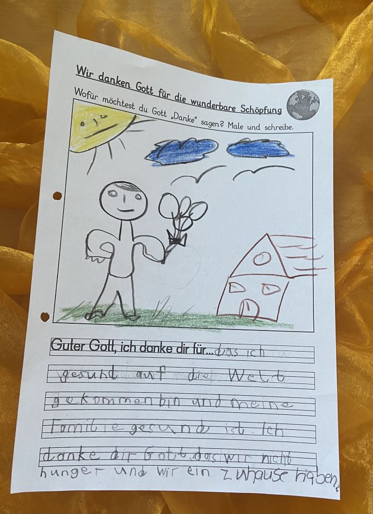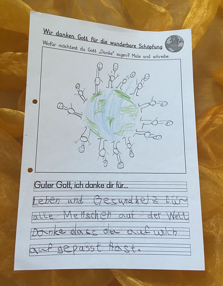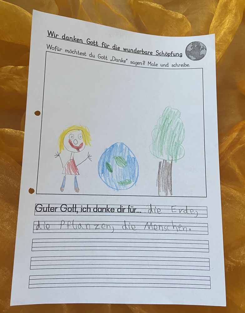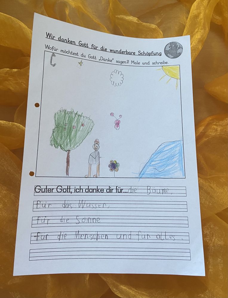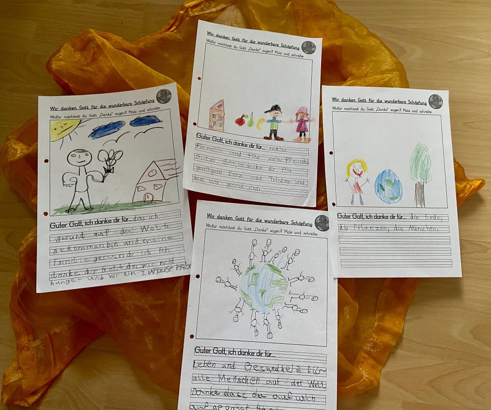Die Klasse 1b hat sich im Distanzunterricht im Fach Religion mit dem Thema "Schöpfung" beschäftigt. Den Kindern sind viele Dinge eingefallen, für die es sich lohnt, "Danke" zu sagen...