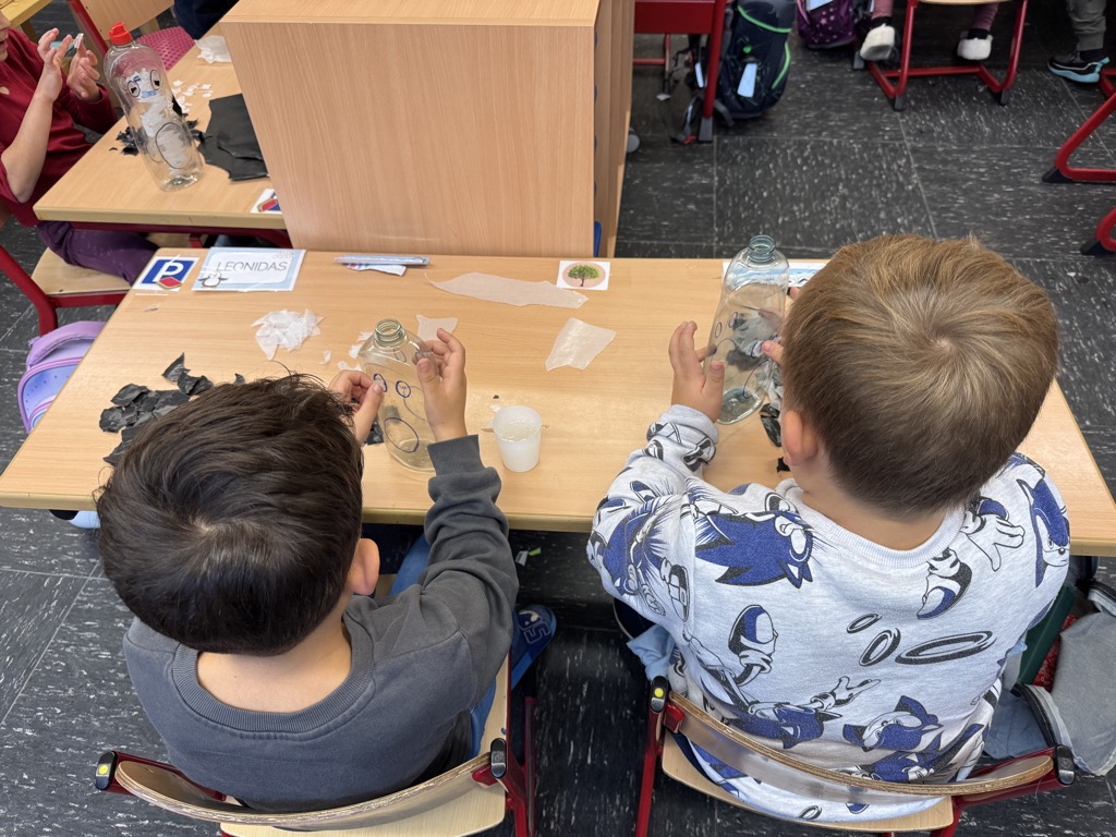 Bei schönem Herbstwetter haben wir einen Ausflug auf unsere Schulwiese gemacht und viele bunte Blätter gesammelt. Daraus bastelten wir mit viel Fantasie und Geduld Herbstkunstwerke für den Schulflur.