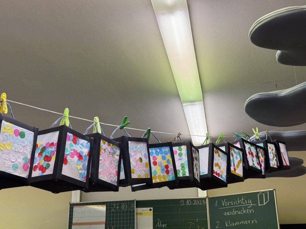Am Herbstbasteltag haben wir in allen Klassen unsere Laternen für St. Martin gebastelt. So schön sind sie geworden: