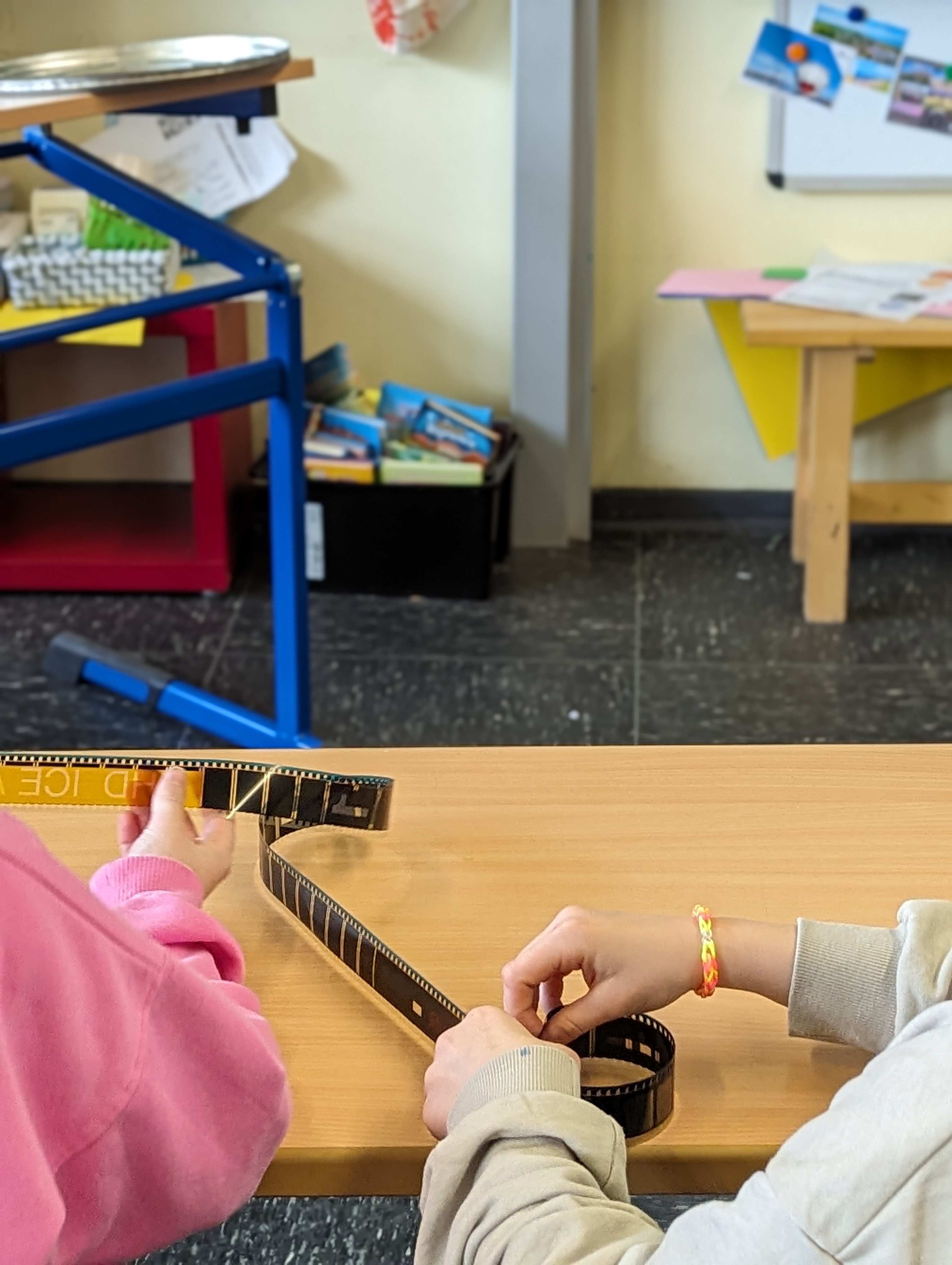 Unsere Viertklässler durften in einer Zeitreise im Filmforum Duisburg eintauchen in das Duisburg vor 100 Jahren. Am Vortag bekamen wir Besuch von Frau Koch, die uns alte Filmrollen mitbrachte, erklärte, wie der Film auf die Leinwand kommt und uns auf den Kinobesuch vorbereitete. In einem beeindruckenden Zusammenschnitt aus Originalaufnahmen von 1924 untermalt von der Livemusik eines Pianisten und begleitet von einem Erzähler erlebten wir dann eine beeindruckende Vorstellung.